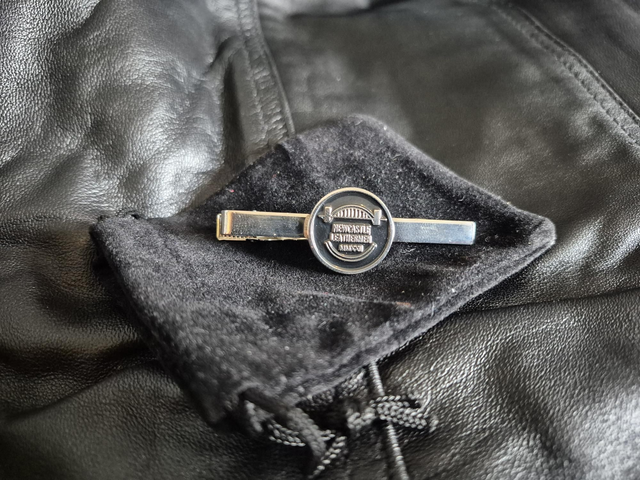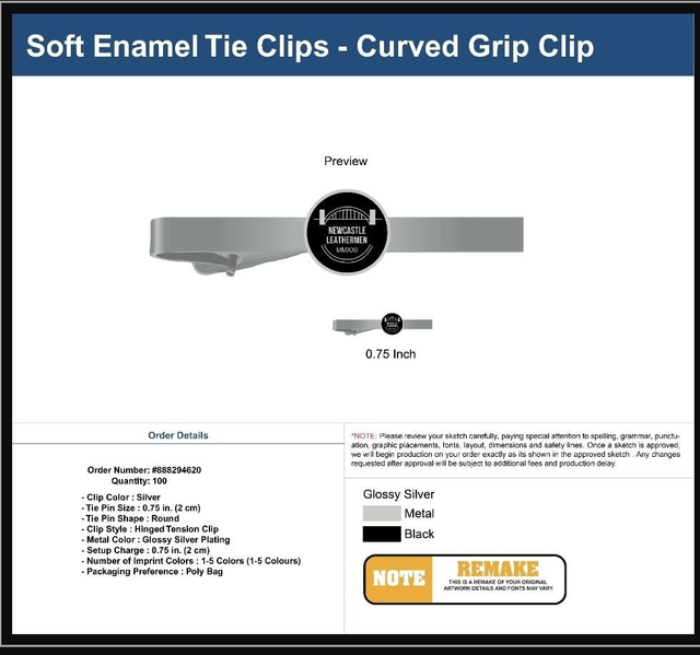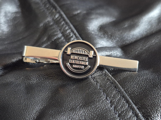 Silver Tieclip with the Newcastle Leathermen logo in black enamel and come in a velvet bag.